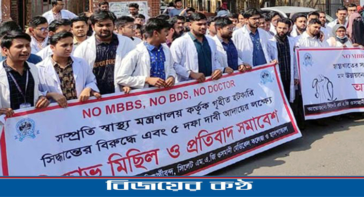 স্বাস্থ্য খাত সংস্কারের ৫ দফা দাবি আদায়ে অনির্দিষ্টকালের জন্য ‘কমপ্লিট শাটডাউন’ কর্মসূচি পালনের হুঁশিয়ারি দিয়েছেন সিলেটের ইন্টার্ন চিকিৎসকরা। সোমবার দুপুরে সিভিল সার্জন অফিসের সামনে অবস্থান কর্মসূচী পালনকালে এ হুঁশিয়ারি দেন ইন্টার্ন চিকিৎসকরা।
