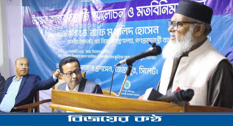 জৈন্তাপুর উপজেলা মডেল মসজিদ ও ইসলামি সাংস্কৃতিক কেন্দ্রের উন্নয়ন কাজের অগ্রগতি পরিদর্শন করলেন ধর্মবিষয়ক উপদেষ্টা ড. আ ফ ম খালিদ হোসেন। এসময় তিনি উপজেলা প্রশাসনের আয়োজনে স্থানীয় মুসল্লী, রাজনৈতিক ব্যক্তিবর্গ ও স্টেকহোল্ডারদের সাথে এক মতবিনিময় সভায় প্রধান অতিথি হিসেবে বক্তব্য রাখেন।